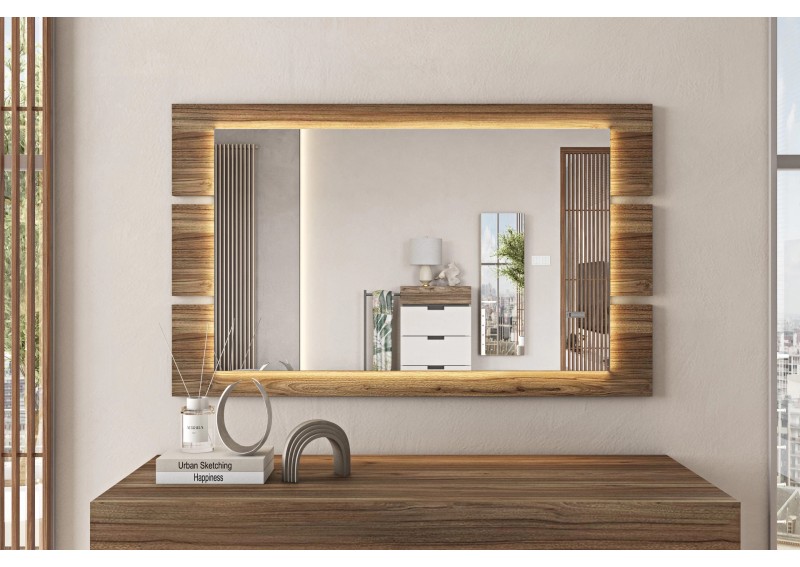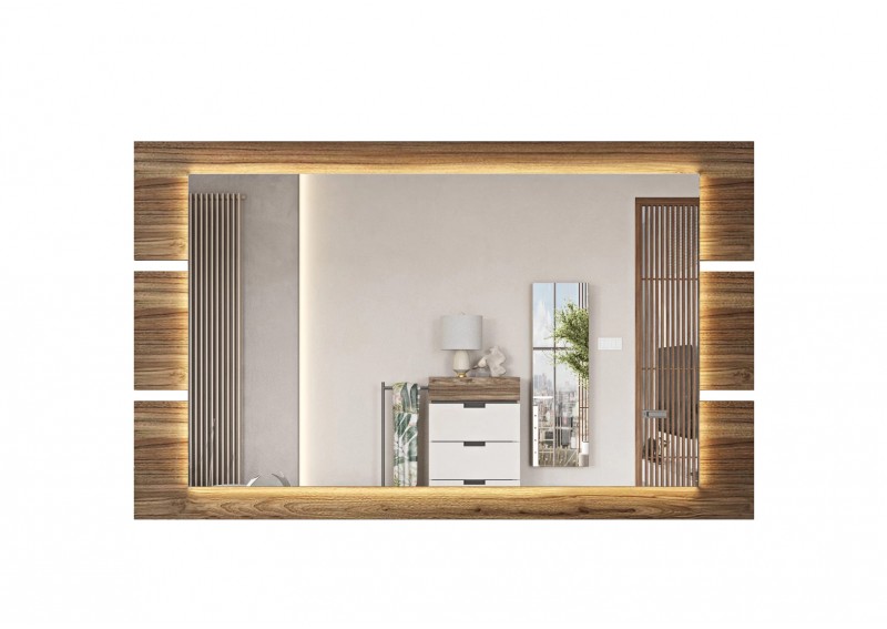 Κατασκευασμένος από τεχνητό καπλαμά χρώματος tobacco walnut, ο καθρέπτης σίγουρα θα ολοκληρώσει το στυλ του υπνοδωματίου σας. Για ακόμη πιο ιδιαίτερο αποτέλεσμα, υπάρχει η δυνατότητα προσθήκης φωτισμού led.