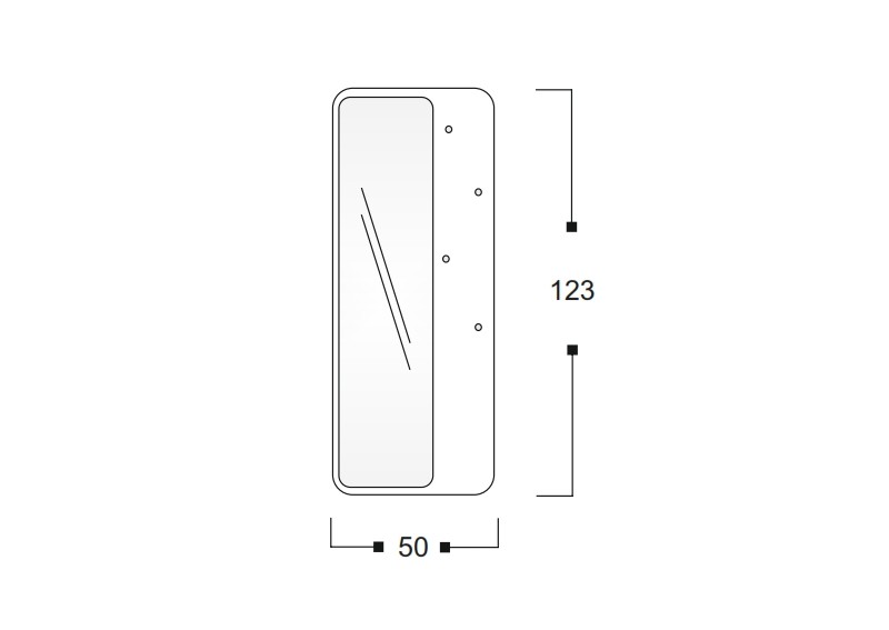 Ο ολόσωμος καθρέπτης είναι κατασκευασμένος από τεχνητό καπλαμά και διαθέτει τέσσερα σημεία κρέμασης στην μπροστινή του όψη.