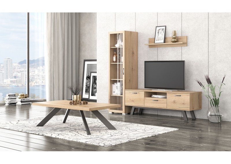 Τραπεζάκι σαλονιού μοντέρνου σχεδιασμού χρώματος φυσικό ξύλο. Είναι ένα τραπεζάκι σαλονιού με ξύλινη επιφάνεια ανοιχτό ράφι και από τις δύο πλευρές έτσι ώστε να βάλετε εκεί το home cinema ή το cd player σας. Σημαντική ενημέρωση: Τα έπιπλα από μασίφ φυσικό κορμό ενδέχεται να έχουν μικρές αποκλίσεις στις διαστάσεις τους καθώς και να διαφοροποιούνται ώς...