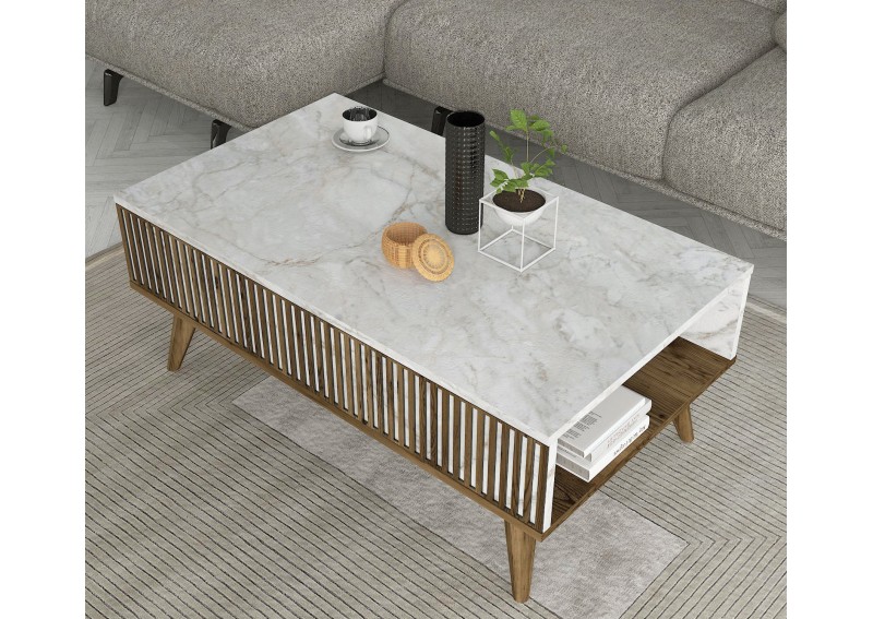 Τραπεζάκι σαλονιού μοντέρνου σχεδιασμού χρώματος φυσικό καρυδί. Διαθέτει έξι συρτάρια με αποθηκευτικό χώρο και ειδικά μικρά χερούλια. Επίσης ξύλινα διαχρονικά ποδαράκια στήριξης που αναδεικνύουν το διαχρονικό στυλ. Είναι ένα πολυ χρησιμο και όμορφο τραπεζάκι σαλονιού που μπορείτε να το τοποθετήσετε παντού μέσα στο σπίτι ακόμη και στην κρεβατοκάμαρα σας....
