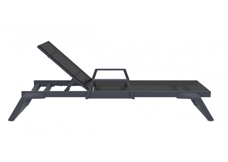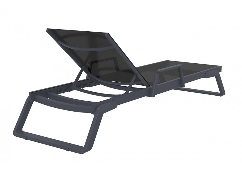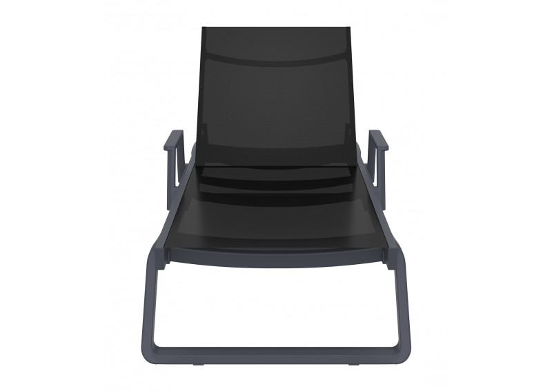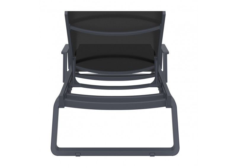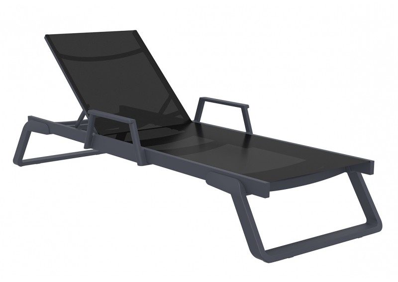 Ξαπλώστρα με μπράτσα του οίκου σε χρώμα dark grey/black από υψηλής ποιότητας πολυπροπυλένιο με ενίσχυση από υαλώδεις ίνες (fiber glass) για απόλυτη αντοχή και polyester fabric Serge Ferrari.Είναι στοιβαζόμενη,έχει ρυθμιζόμενη πλάτη 5 θέσεων,μικρά ροδάκια στo πίσω μέρος για εύκολη μετακίνηση και αντιολισθητικά πέλματα εμπρός.Κατάλληλη για εσωτερική και εξωτερική χρήση.Πιστοποιημένο προιόν από τον Ιταλικό οίκο CATAS.