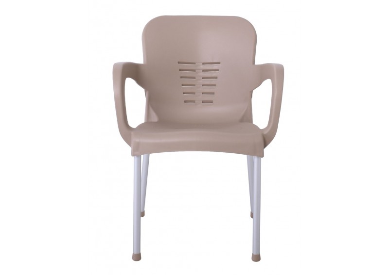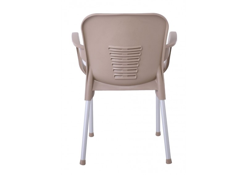Μοντέρνα πολυθρόνα λευκό με μαύρο μεταλλικό σκελετό ιδανική για εξωτερικούς χώρους.