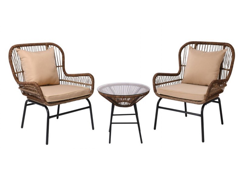 Σαλόνι σετ πολυπροπυλένιο μοντέρνου σχεδιασμού χρώματος καφέ με grey white μαξιλάρια. Διαθέτει έναν καναπέ, 2 πολυθρόνες και ένα τραπέζι όπου μπορείτε να το τοποθετήσετε σε οποιοδήποτε εξωτερικό χώρο. Είναι ένα σαλόνι που μπορεί να σας εξυπηρετήσει και να σας ικανοποιήσει με τον σωστό και μοντέρνο τρόπο που χρειαζόσαστε στον εξωτερικό σας χώρο....