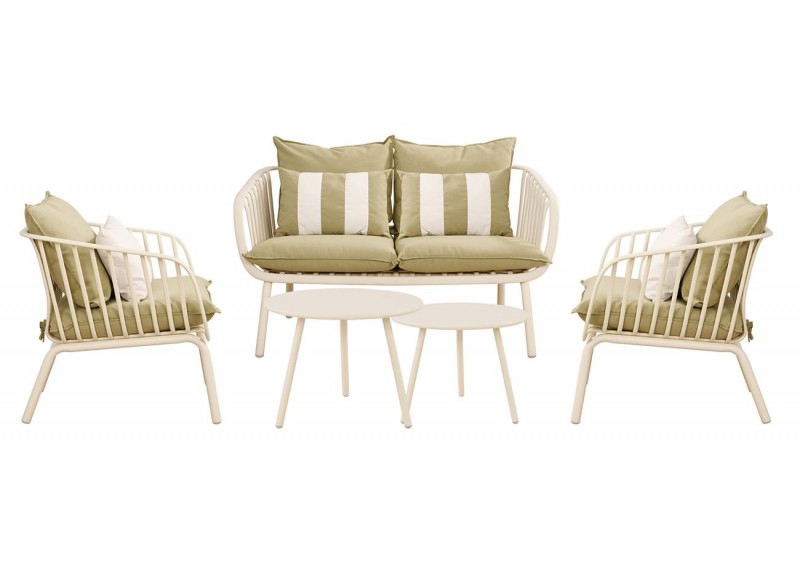 ΣΑΛΟΝΙ ΣΕΤ PP & ΜΕΤΑΛΛΟ CREAM ΜΕ ΜΑΞΙΛΑΡΙΑ SANDY GREEN