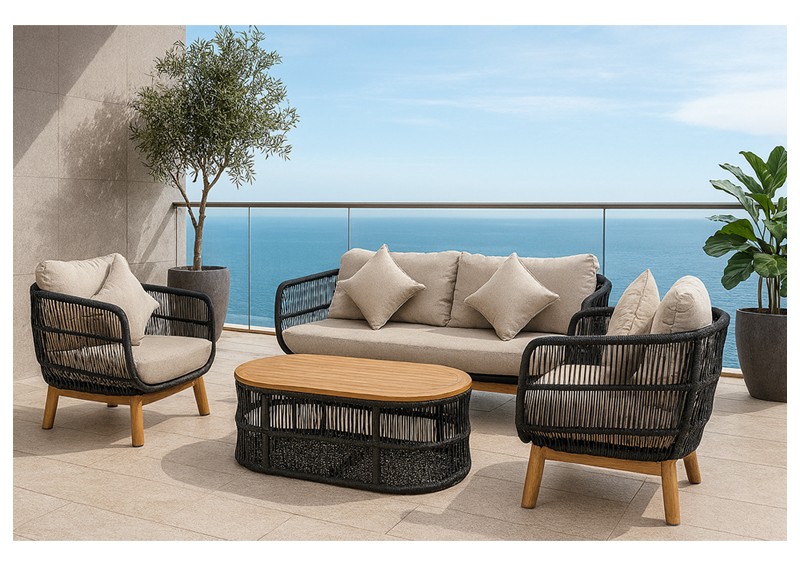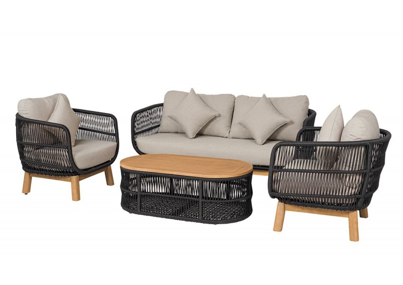 Σαλόνι σετ μοντέρνου σχεδιασμού χρώματος γκρι wicker. Διαθέτει έναν καναπέ, 2 πολυθρόνες και ένα τραπεζάκι έτσι ώστε να σας εξυπηρετήσει σωστά. Είναι ένα σαλόνι σετ που μπορείτε να το χρησιμοποιήσετε σε οποιοδήποτε εξωτερικό χώρο ή αυλή έτσι ώστε να εξυπηρετήσει εσάς και τους αγαπημένους σας. Αξιοποιήστε το και χρησιμοποιήστε το στο έπακρο.
