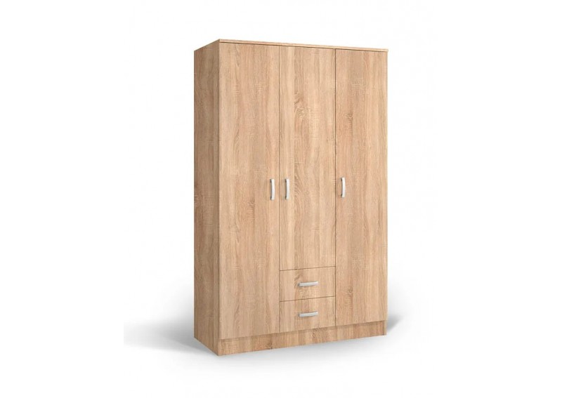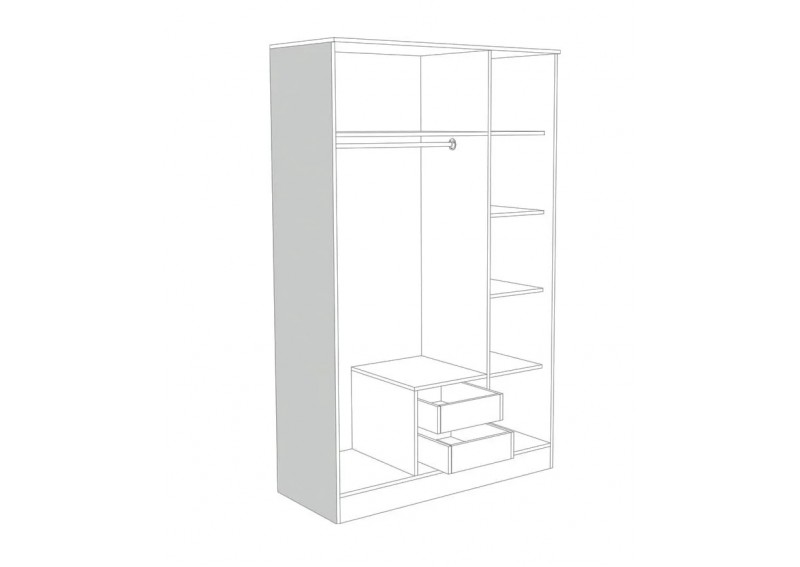 Ντουλάπα τρίφυλλη με τρία ανοιγόμενα φύλλα και δύο εξωτερικά συρτάρια.