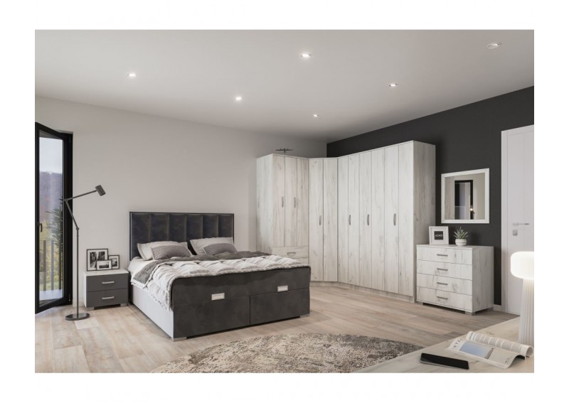 Ντουλάπα δίφυλλη με δύο δίφυλλα σπαστά φύλλα τύπου φυσούνας. Έχει δύο εσωτερικά πατάρια, σωλήνα για κρέμαση, ραφιέρα στήλη 4 επιπέδων στο μισό της ντουλάπας. Κατασκευάζεται από υψηλής ποιότητας και πυκνότητας μοριοσανίδα (μελαμίνη) πάχους 18 mm των ευρωπαίων παραγωγών. Μεταλλικά χερουλάκια – πόμολα του ευρωπαϊκού οίκου, τελείωμα ABS σόκορο.