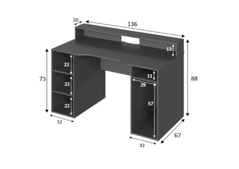 Διαστάσεις: Μήκος: 136 x Βάθος: 67 x Ύψος: 88cm