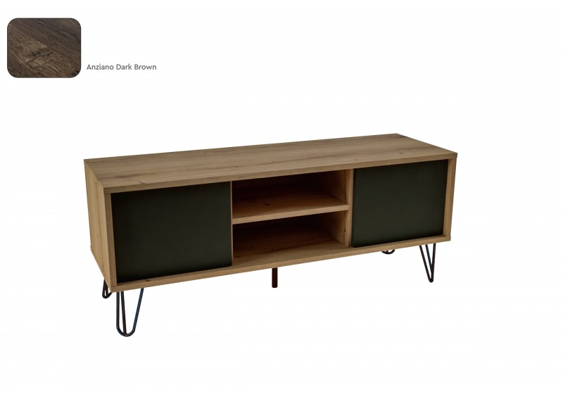 Έπιπλο TV 18mm, με μεταλλικά πόδια,ανοιγόμένες πόρτες με κρυφό μηχανισμό push και σταθερό ραφάκι. Διατίθεται σε 4 natural χρώματα και δυνατότητα συνδιασμού με ανθρακί πορτάκια
