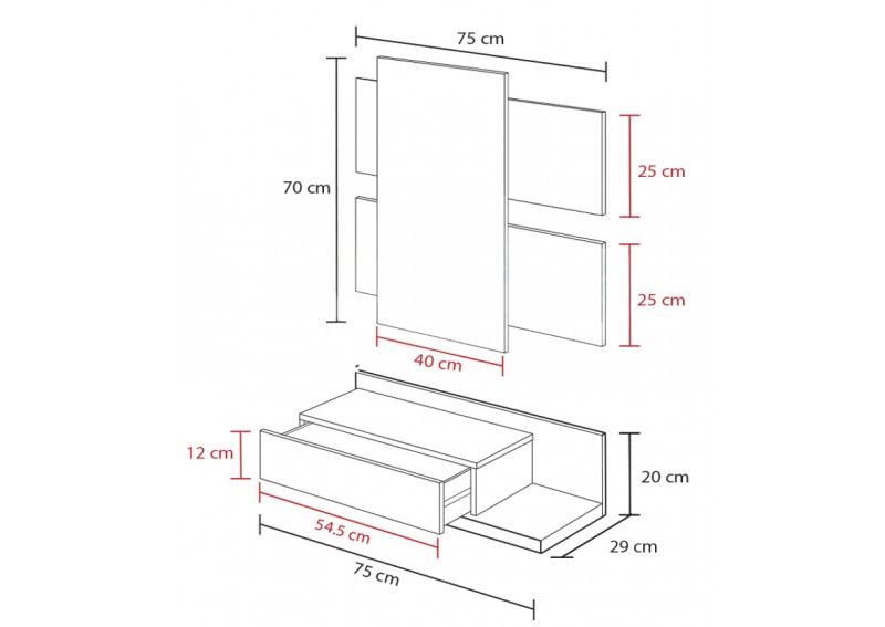 Διαστάσεις: Μήκος: 75 x Βάθος: 29 x Ύψος: 20cm