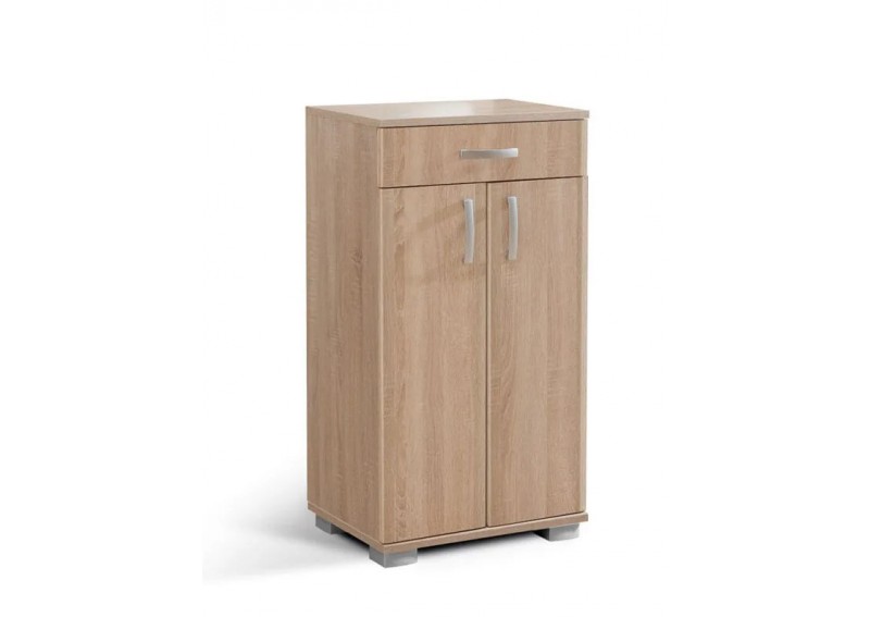 Έπιπλο εισόδου - παπουτσοθήκη, με 2 πόρτες, 1 εξωτερικό συρτάρι, ράφια 3 επιπέδων. Κατασκευάζεται από υψηλής ποιότητας και πυκνότητας μελαμίνη πάχους 18 mm των ευρωπαίων παραγωγών EGGER, KRONOSPAN. Με πιστοποιημένους και εγγυημένους μηχανισμούς των ευρωπαϊκών οίκων INCOLL , HETTICH , TITUS .Μεταλλικά χερουλάκια – πόμολα του ευρωπαϊκού οίκου RUJZDESIGN . Τελείωμα ABS σόκορο. Υψηλή αισθητική, άριστη ποιότητα, οικονομική, λειτουργική.