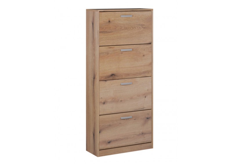 Ιδανική παπουτσοθήκη, κομότα εισόδου, αποθήκευσης 24 ζεύγη παπουτσιών, σε 4 επίπεδα ντουλαπιών.Κατασκευάζεται από υψηλής ποιότητας και πυκνότητας μοριοσανίδα (μελαμίνη) πάχους 18 mm, των ευρωπαίων παραγωγών EGGER, KRONOSPAN. Με πιστοποιημένους και εγγυημένους μηχανισμούς των ευρωπαϊκών οίκων INCOLL , HETTICH , TITUS .Μεταλλικά χερουλάκια – πόμολα του ευρωπαϊκού οίκου RUJZDESIGN . Τελείωμα ABS σόκορο, soft forming.
