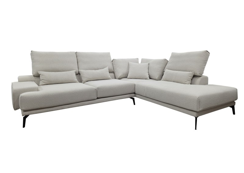 Γωνιακή σύνθεση καναπέ μοντέρνου σχεδιασμού. Διαθέτει μεγάλο και άνετο κάθισμα με καμπυλώτά μαξιλάρια πλάτης έχει μια διαγώνια ευχάριστη κλίση που τον κάνουν ξεχωριστό και πρωτότυπο. Με εσωτερικό ξύλινο σκελετό από οξιά και δυνατότητα παραγγελίας δεξιά ή αριστερά γωνία. Ιδανική και μοντέρνα γωνιακή λύση καναπέ για το σπίτι σας.