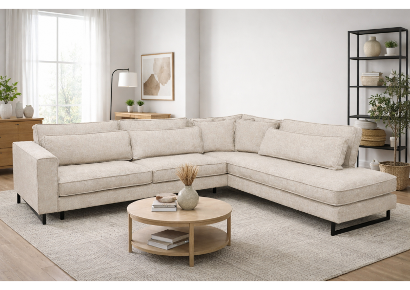 Γωνιακή σύνθεση καναπέ μοντέρνου σχεδιασμού. Διαθέτει μεγάλο και άνετο κάθισμα με καμπυλώτά μαξιλάρια πλάτης έχει μια διαγώνια ευχάριστη κλίση που τον κάνουν ξεχωριστό και πρωτότυπο. Με εσωτερικό ξύλινο σκελετό από οξιά και δυνατότητα παραγγελίας δεξιά ή αριστερά γωνία. Ιδανική και μοντέρνα γωνιακή λύση καναπέ για το σπίτι σας.
