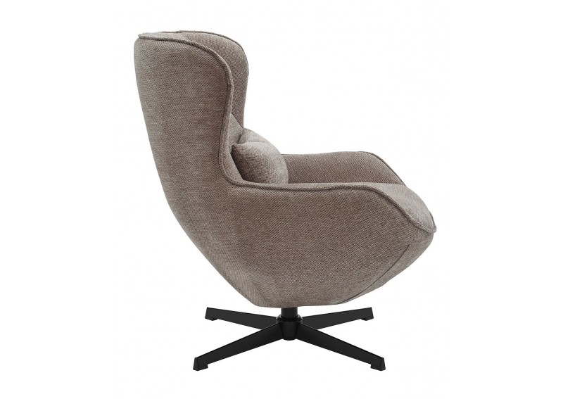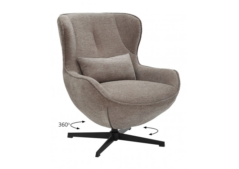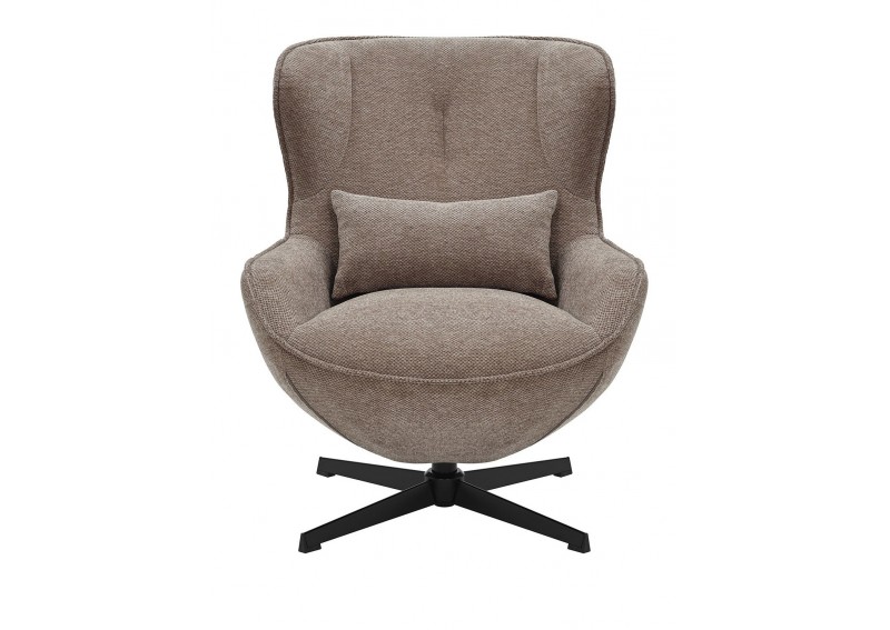 Πολυθρόνα μοντέρνου σχεδιασμού ιδανική επιλογή για να συμπληρώσει τη διακόσμηση του χώρου σας και να χαρίσει ιδιαίτερο στυλ. Το κάθισμα της είναι επενδεδυμένο από ύφασμα υψηλής ποιότητας και αντοχής σε χρώμα μόκα. Επίσης διαθέτει μεταλλική βάση διπλής ηλεκτροστατικής βαφής σε χρώμα μαύρο mat, με δυνατότητα περιστροφής 360° γεγονός που την καθιστά ιδιαίτερα εύχρηστη. Η πολυθρόνα είναι εξαιρετικά αναπαυτική ενώ το στυλ της μπορεί να καλύψει τις αισθητικές ανάγκες σας σε οποιονδήποτε χώρο.