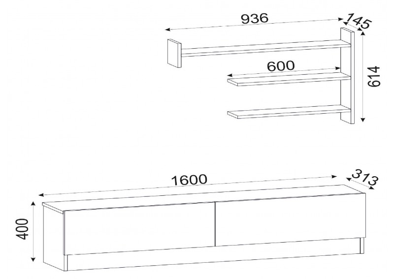 Διαστάσεις: Μήκος: 160 x Βάθος: 31 x Ύψος: 40cm