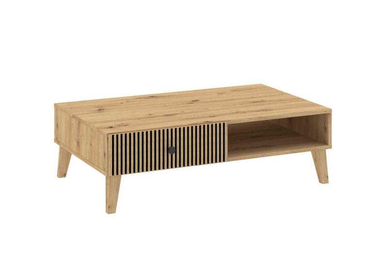 Τραπεζάκι σαλονιού μοντέρνου σχεδιασμού χρώματος φυσικό ξύλο ακακία. Διαθέτει ξύλινη επιφάνεια με μαύρα μεταλλικά ποδαράκια στήριξης και έχει ξύλο hard Acacia μασίφ ακατέργαστο. Σημαντική ενημέρωση: Τα έπιπλα από μασίφ φυσικό κορμό, ενδέχεται να έχουν μικρές αποκλίσεις στις διαστάσεις τους καθώς & να διαφοροποιούνται ως προς τις σχισμές & τα νερά...