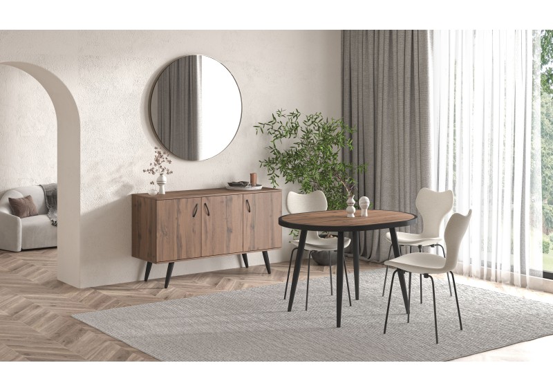 Ξύλινος μπουφές παραδοσιακού σχεδιασμού χρώματος φυσικό ξύλο. Διαθέτει ξύλο Hard acacia μασίφ ακατέργαστο. Είναι ένας ξύλινος μπουφές που μπορείτε να τον τοποθετήσετε κοντά στην τραπεζαρία σας με μεγαλύτερη άνεση. Σημαντική ενημέρωση: Τα έπιπλα από μασίφ φυσικό κορμό, ενδέχεται να έχουν μικρές αποκλίσεις στις διαστάσεις τους καθώς & να...