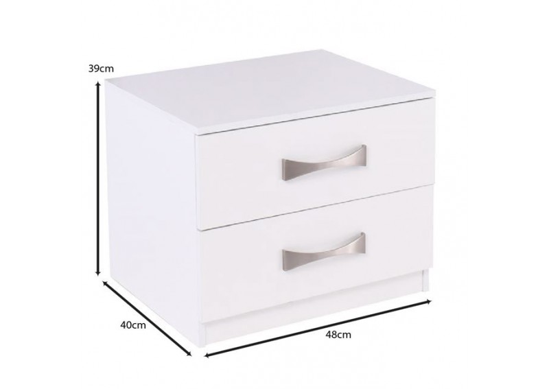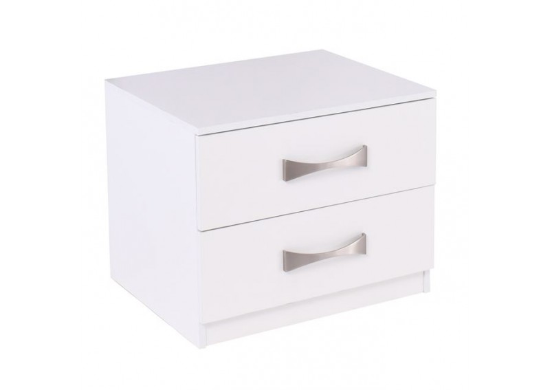 Κομοδίνο ξύλινο απλού σχεδιασμού χρώματος λευκό. Διαθέτει ξύλινη επιφάνεια για να βάλετε εκεί το ξυπνητήρι σας και δύο συρτάρια με αποθηκευτικό χώρο για να βάλετε τα αγαπημένα σας μικροαντικέιμενα. Είναι ένα κομοδίνο που ταιριάζει δίπλα από το κρεβάτι στην κρεβατοκάμαρα σας. Κομοδίνο που έρχεται να σας εξυπηρετήσει σωστά. Οικονομικό και χρήσιμο κομοδίνο...