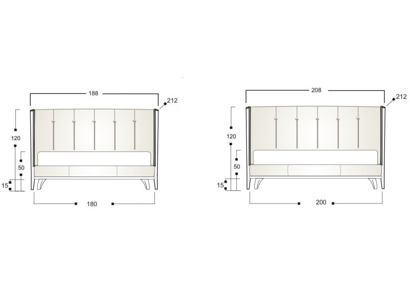 Διαστάσεις: Πλάτος: 188 ή 208 x Μήκος: 212 x Ύψος: 120cm