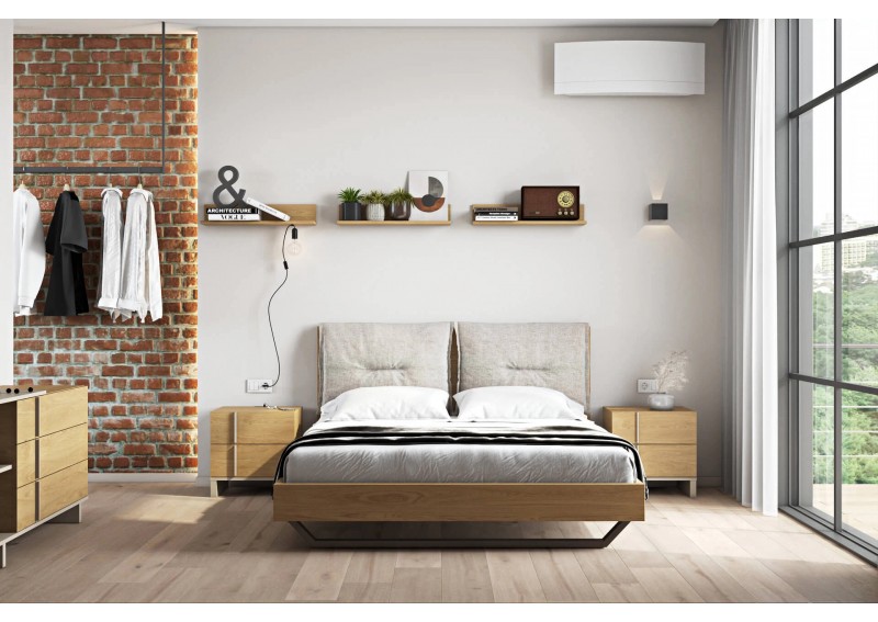 Το κρεβάτι είναι κατασκευασμένο από μελαμίνη από 100% ανακυκλωμένο ξύλο σε φυσικό δρυς και συνδυάζεται υπέροχα με την μεταλλική βάση στήριξης σε truffle brown ηλεκτροστατική βαφή.