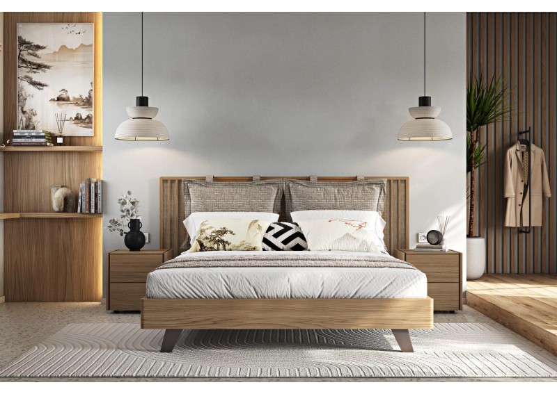 Κρεβάτι από ξύλο δρυς. Συνδυάζει μασίφ ξύλινες επιφάνειες και ψάθα στο κεφαλάρι. Το ποδαρικό έχει στρογγυλεμένες γωνιές και στηρίζεται σε πόδια από ξύλο μασίφ. Διαθέσιμο σε 2 διαστάσεις στρώματος και 11 διαφορετικά χρώματα φυσικού καπλαμά. Μετατρέπεται εύκολα σε αποθηκευτικό χώρο και προσαρμόζεται led φωτισμός στο κεφαλάρι και τη βάση. Διαθέσιμα και μαξιλάρια για το κεφαλάρι.
