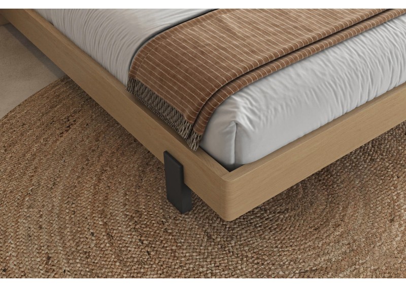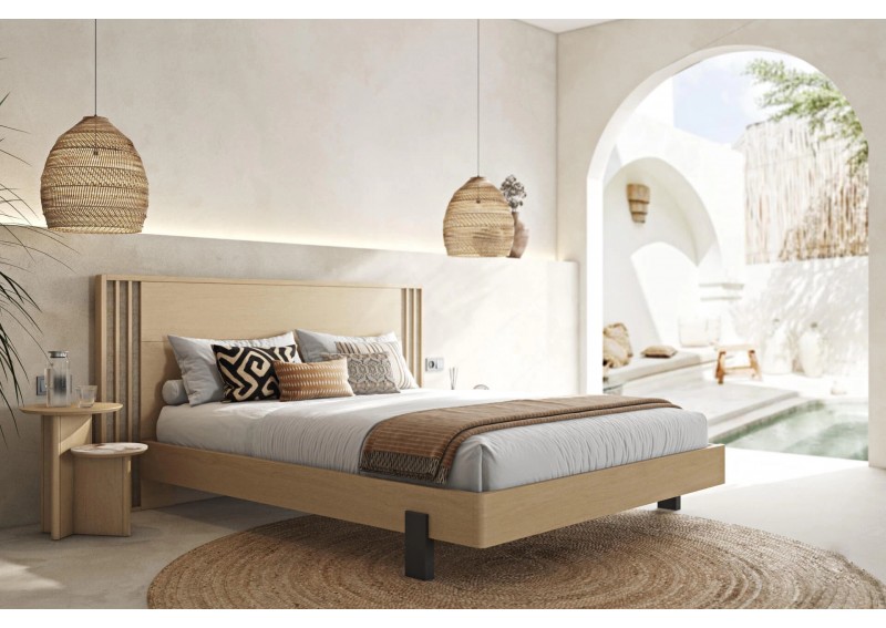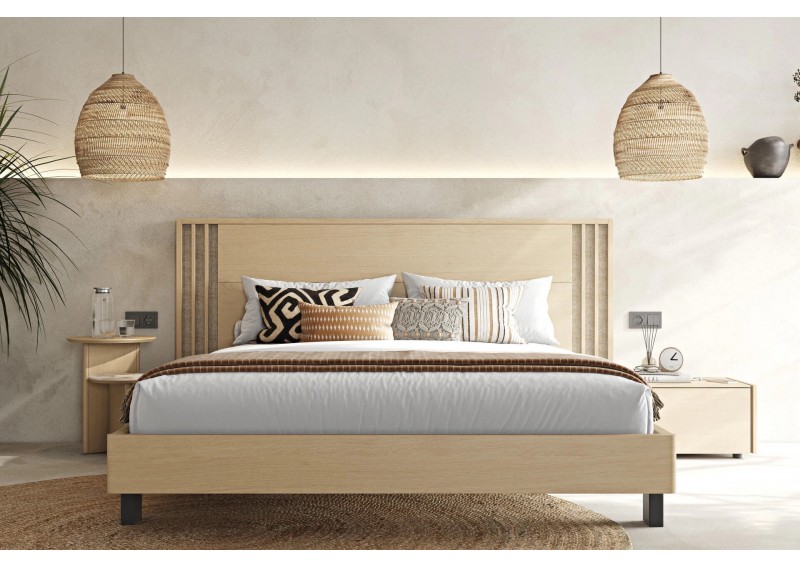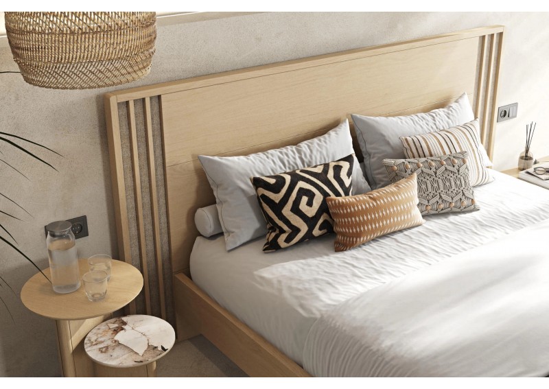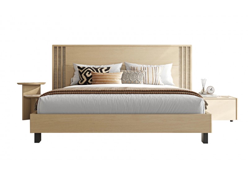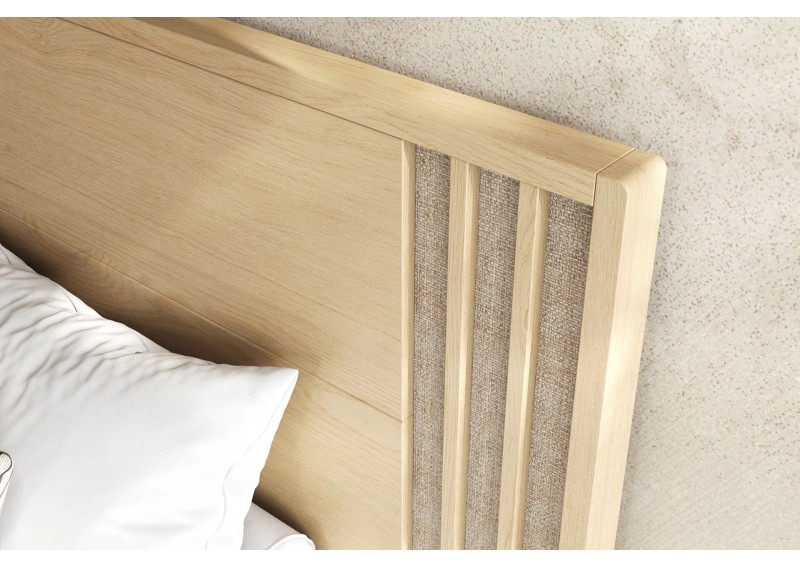 Κρεβάτι από ξύλο δρυς. Συνδυάζει μασίφ ξύλινες επιφάνειες και ψάθα στο κεφαλάρι. Το ποδαρικό έχει στρογγυλεμένες γωνιές και στηρίζεται σε πόδια από ξύλο μασίφ. Διαθέσιμο σε 2 διαστάσεις στρώματος και 11 διαφορετικά χρώματα φυσικού καπλαμά. Μετατρέπεται εύκολα σε αποθηκευτικό χώρο και προσαρμόζεται led φωτισμός στο κεφαλάρι και τη βάση. Διαθέσιμα και μαξιλάρια για το κεφαλάρι.